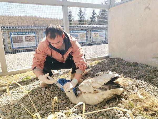 贯注野生物种的救护,尤其锻练专科和耐烦。2025年,中卫市海原县送来一只国度一级保护动物大鸨,初到时应激反馈浓烈,东说念主一荟萃就拒食。他们先为其打针生理盐水保管人命,经向北京猛禽赈济中心众人请问,尝试插胃管喂玉米糊。几经调换摸索,他们发现大鸨偏疼大白菜,便逐日投喂补充养分。经过10多天连续,大鸨还原体能。六盘山莫得适配的栖息地,郭志宏就关系宁夏不雅鸟协会,得回银川黄河湿地大鸨越冬种群坐标,又关系海原县林业部门,终于护送这只大鸨归来当然。