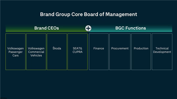 包括,现存的9名负责坐褥、采购和研发的前董事会成员将被降职,调任至董事会以下的岗亭,这是因为以后各个品牌的研发、采购、坐褥等这类的职能,不再包摄于各个品牌,而是采集由德国沃尔夫斯堡总部统筹,由新建树的品牌中枢经管委员会(BGC)在跨品牌层面进行经管。