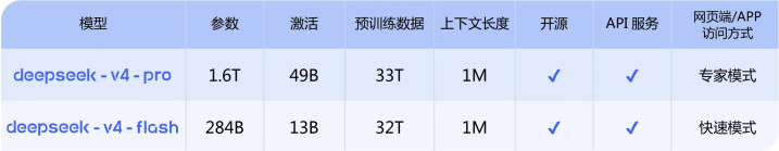 此次发布的V4分红两款:旗舰版V4-Pro总参数1.6万亿(激活参数490亿),经济型V4-Flash总参数2840亿(激活参数130亿)。全是MoE架构,十足标配100万token险峻文。