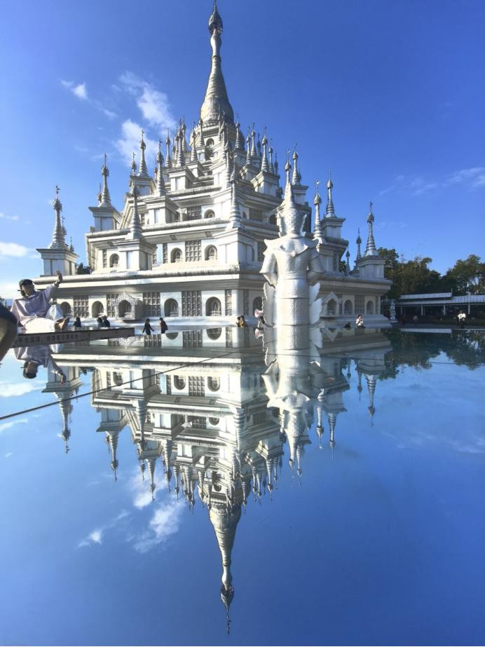 勐焕大金塔是亚洲第一空腹佛塔,夜晚灯光亮起时相称轰动;银塔则以纯白色彩为主,拍出来的相片自带ins风;