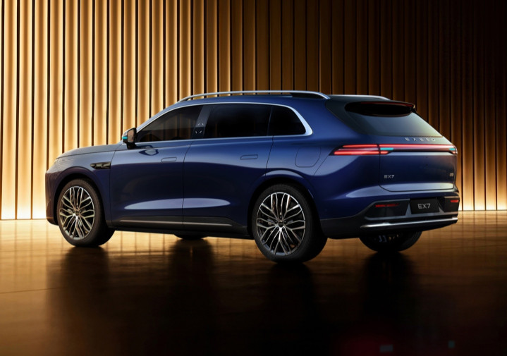 外不雅方面,星途EX7接受星途最新眷属化盘算说念话,前脸配备分局面大灯组,上部为贯串式LED灯带,下部融入贯串式镀铬荫庇,变成高下呼应的运动视觉后果。车身侧面线条实足,配备荫藏式门把手。车尾相通接受贯串式灯带盘算,并配备智驾小蓝灯。