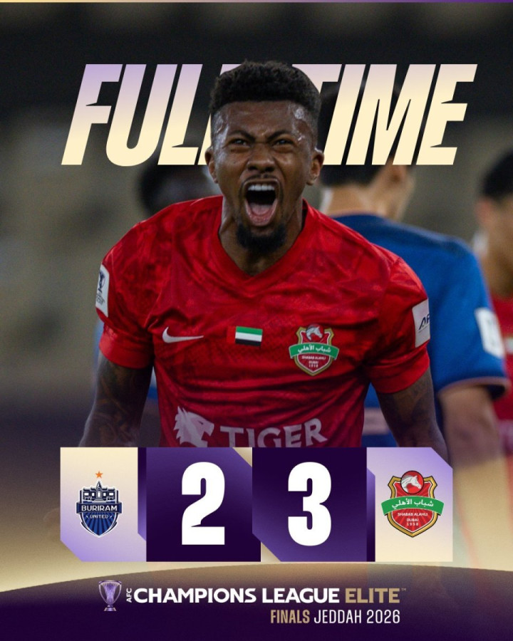 在终末1场对决中,阿联酋联赛朱门迪拜后生国民3-2力挫泰超霸主武里南联队。第13分钟,前亚泰外助祖伊自摆乌龙,武里南联开场便逾期。第49分钟,伊朗国脚埃扎托拉希头槌破门,匡助迪拜后生国民一度将比分扩大至2-0。