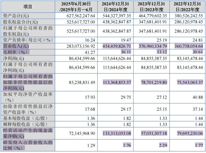 回看更早的功绩轨迹:2022年至2024年,公司营业收入隔离为3.61亿元、3.77亿元、4.54亿元,复合增长率12.24%;净利润隔离为8314.55万元、8485.54万元、1.16亿元,复合增长率17.94%。毛利率合手续种植,从2022年的30.61%增至2024年的36.11%,2025年上半年彩客新动力的神志中间体及新材料业务毛利率已达到41.27%。