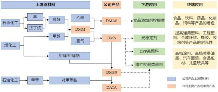 当作本次上市主体,彩客科技是彩客新动力旗下最中枢的子公司之一,出奇从事高性能有机神志中间体、食物添加剂中间体及光踏实剂中间体研发、分娩和销售。公司中枢家具涵盖DMSS、DATA、DMAS、DMS等高性能有机神志中间体、食物添加剂中间体及光踏实剂中间体,平庸应用于高级涂料及喷墨油墨、汽车面漆、儿童玩物、食物饮料、药品及化妆品、塑料农膜、合成纤维、胶粘剂等领域。