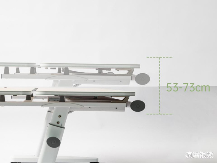 高度调度:桌高调度范围为53-73cm,刚好覆盖身高90-175cm的孩子,从小学1年岁用到初中毕业完全够用。