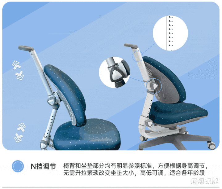 座高调度范围为29-50cm,座深可在24-40cm之间调度,能精确适配不同身高、体型的孩子。入座后可简单完毕“小腿垂直90°、大腿水平90°”的正确坐姿,椅背-1°微倾因循联想,不会卡腿,也不会影响腿部血液轮回,孩子久坐1-2小时,腿部也不会出现麻痹、酸胀感。调度操作粗拙,家长带领1-2次后,孩子就能根据我方的身高自主调度,适配成长历程中的身高变化。