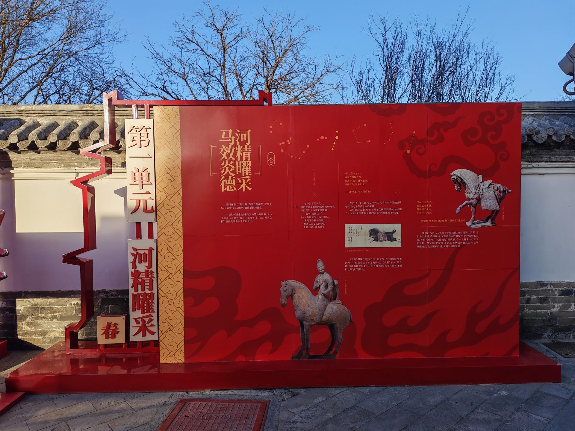 展览以“丙午佳乘,潇洒权奇”为主题,弃取“环形流线”预备,在交融古建筑景不雅功能的基础上,通过图文展示+互动安装+艺术好意思陈等各样化的步地,展现“马”在中国传统文化中的多重文化内涵,为不雅众呈现一场联结四季、融汇古今的“马文化”千里浸式体验。